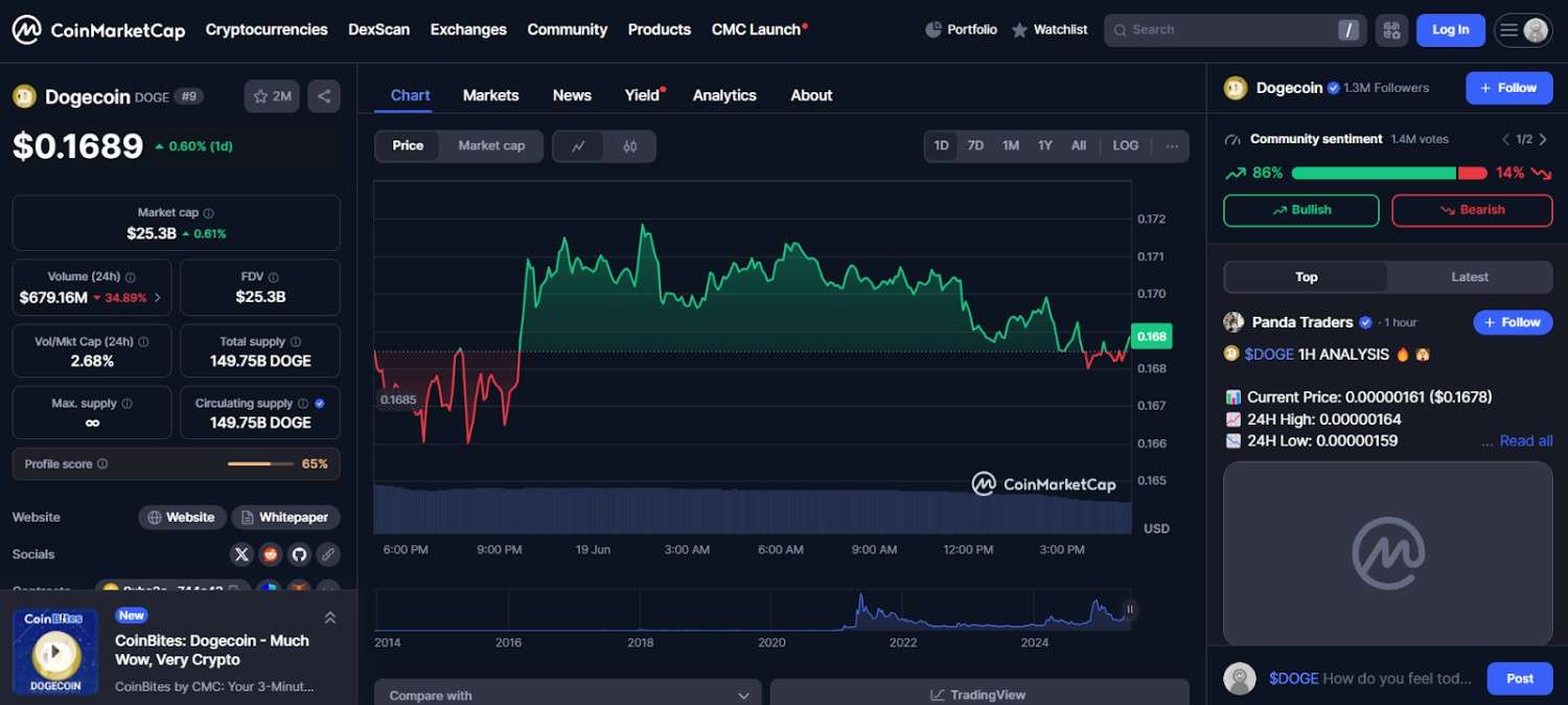 Dogecoin experienced a modest rally to $0.180 after bulls defended the $0.177 level on June 17th, but the upward momentum waned. CoinMarketCap currently lists the price at $0.168, with a 24-hour trading volume of approximately $679 million. The $0.165 support level is crucial; a breach could trigger stop-loss orders, potentially driving the price down towards $0.148.
