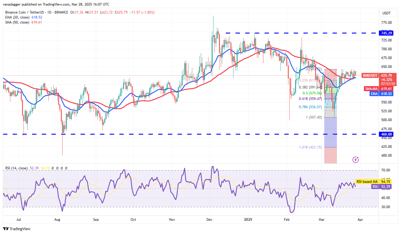 BNB (BNB) has traded between its moving averages and the $644 resistance for several days.