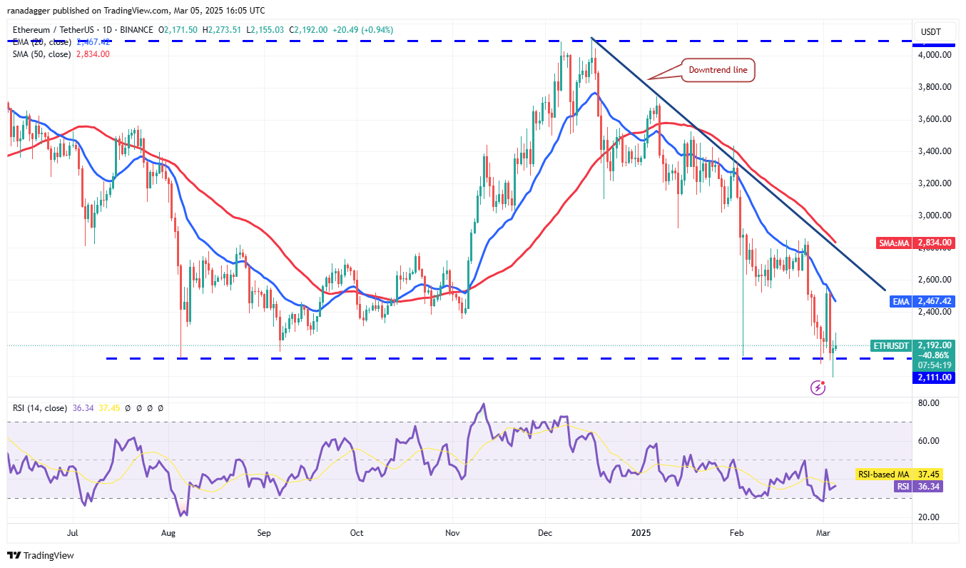 Ether (ETH) dipped below $2,000 on March 4th, but strong buying at lower levels, evident in the long lower wick of the candlestick, suggests bullish support.
