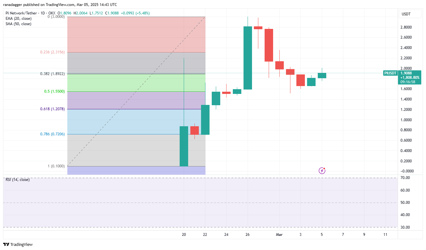 Profit-taking subsequently pulled the price down, with the PI/USDT pair finding support at the 50% Fibonacci retracement level of $1.55. A recovery attempt is anticipated towards $2.38 and then $2.80. A break and close above $3 would signal a resumption of the uptrend towards $4.45.