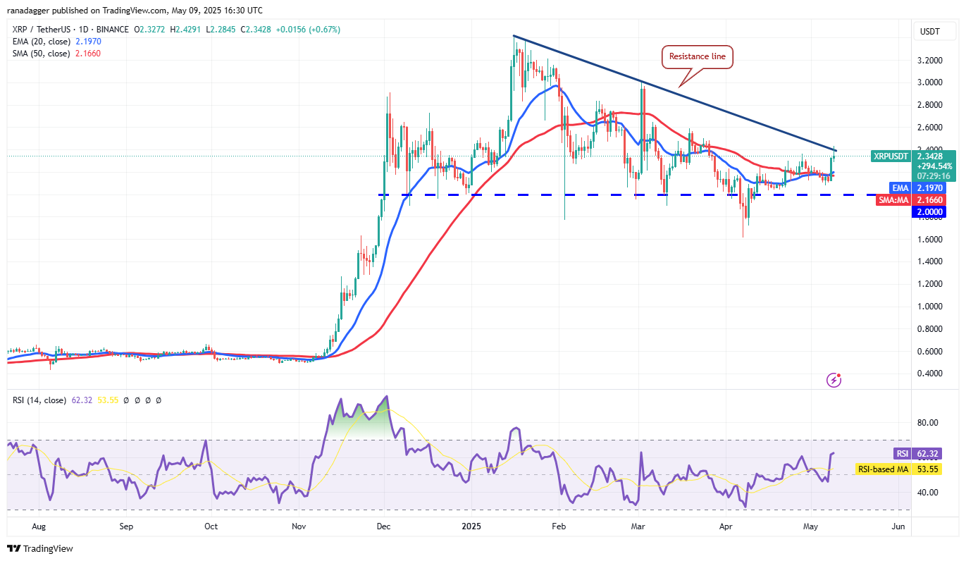 A break and close above this resistance line signals a potential trend change, with the XRP/USDT pair potentially rising to $2.60 and then $3. If the price declines from the resistance line but finds support at the moving averages, it indicates buyer support, setting the stage for another attempt to break above the resistance. A drop below the $2 support would cede control to sellers.