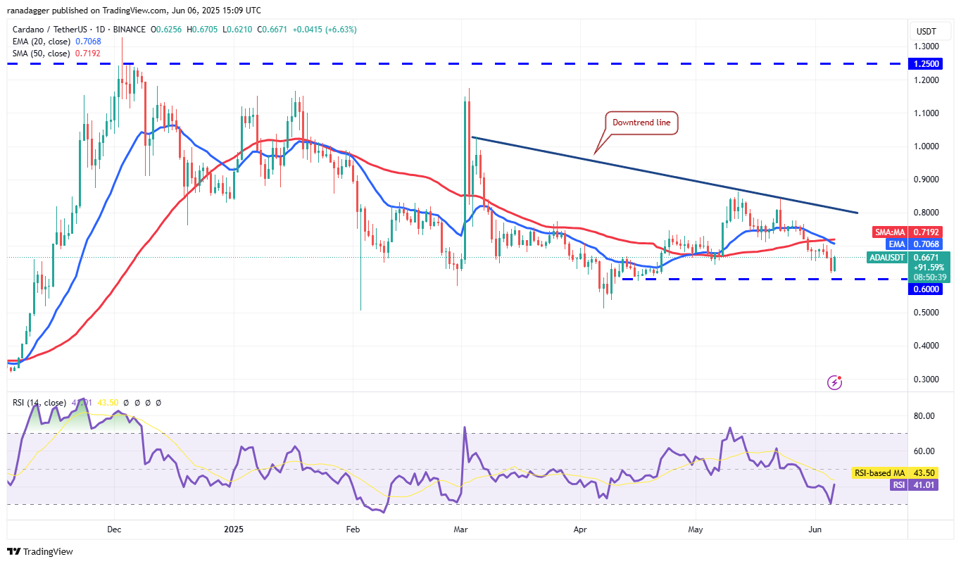 Cardano (ADA) continued its decline, reaching near the support of $0.60 on June 5, indicating that bears are in control.