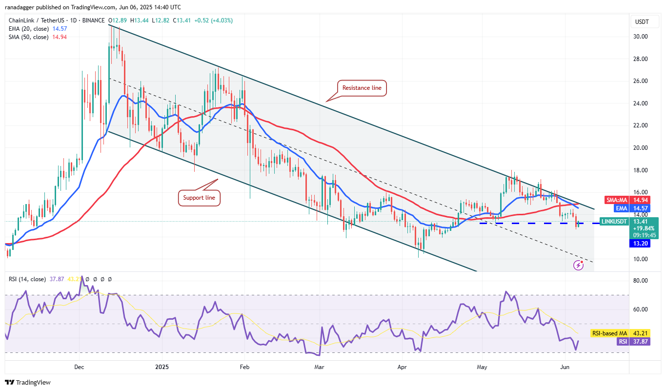 Chainlink (LINK) fell below the $13.20 level on June 5, suggesting the price may remain within the descending channel pattern for a few days.