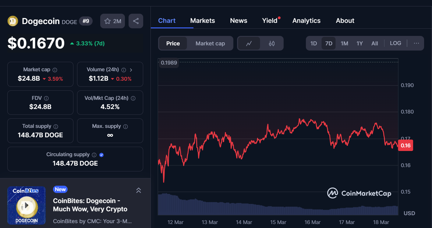 Dogecoin (DOGE), a popular meme coin, is facing challenges due to significant miner sell-offs. Crypto analyst Ali Martinez reported on X that Dogecoin miners sold over 65 million DOGE tokens in just 48 hours, creating substantial selling pressure that could further depress the price. Currently trading around $0.170, Dogecoin has struggled since its February peak, and analysts warn of potential further drops to $0.15 or lower if selling continues. Profitability concerns and bearish market conditions are likely driving this rapid offloading of holdings. While some anticipate a future rally, the immediate outlook remains uncertain, causing many investors to consider more promising alternatives such as RCO Finance.