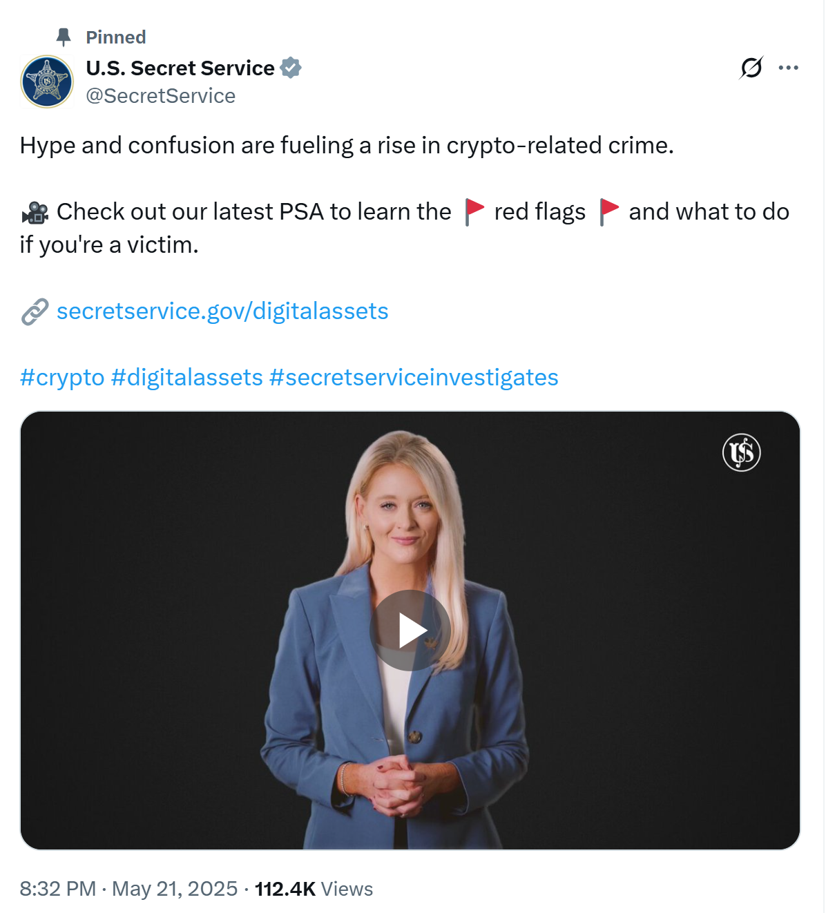 The US Secret Service has quietly amassed nearly $400 million in digital assets over the past decade, building one of the world's most significant crypto cold wallets, according to a Bloomberg report citing individuals familiar with the matter.