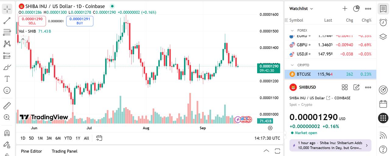 Shiba Inu remains active as one of the largest meme coins by market cap, with its community continuing to focus on reducing supply through steady token burns. Recent reports highlight rising burn rates and community-driven pushes that keep SHIB in the conversation despite mixed performance on its Layer-2 Shibarium network.