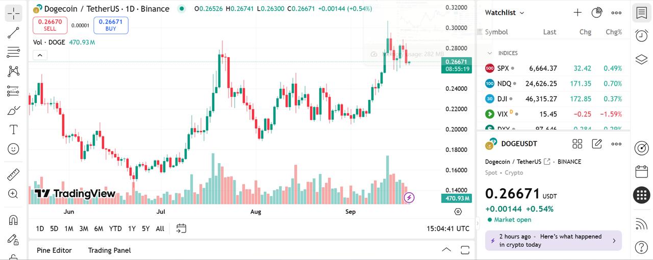 Dogecoin price prediction models show traders optimistic after DOGE surged nearly 40% in one week, driven by bits of news like the first memecoin ETF in the U.S. Several technical indicators support a move above $0.30 to $0.38, provided DOGE maintains support around $0.25 to $0.26.
