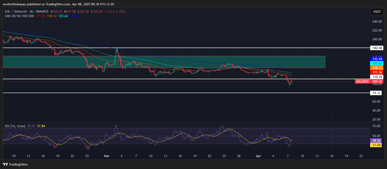The Relative Strength Index (RSI) stands at 39, suggesting strong bearish momentum. If buyers successfully push the price towards the $110 resistance level, SOL could potentially reach the $135-$160 resistance zone. Breaking this level could restore market confidence and potentially drive the price towards $180.