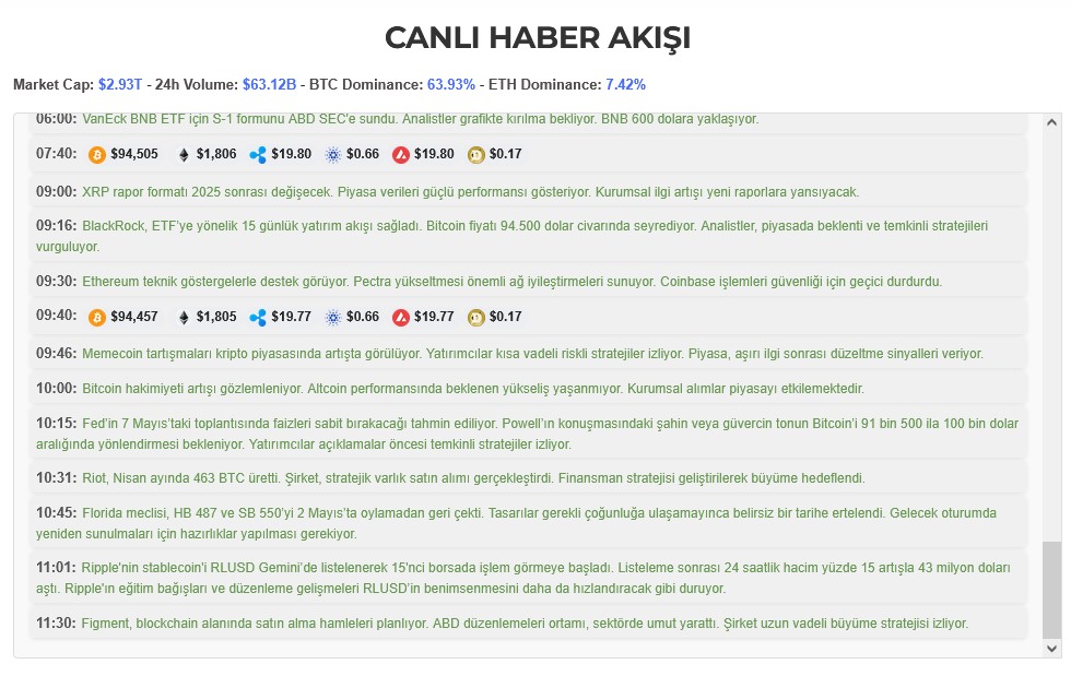 In the volatile cryptocurrency market, trends shift rapidly. COINTURK offers a real-time news feed, delivering the latest updates on Bitcoin (BTC), Ethereum (ETH), and other prominent altcoins. This live service ensures enthusiasts and traders remain informed about every crucial market development, 24/7.