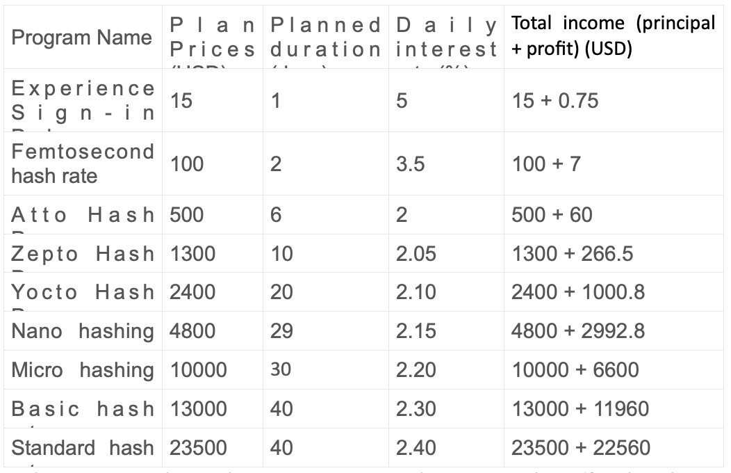 - Choose a Mining Package: Select a computing power package that aligns with your budget and needs. Detailed profit expectations are provided for each package.