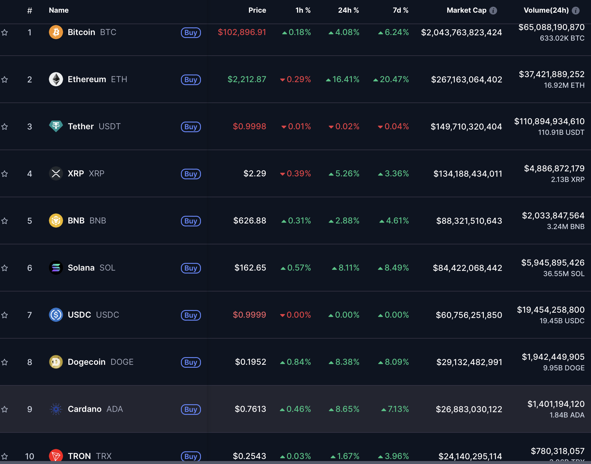 Top 10 Cryptocurrency Performance Overview (May 9, 2025)