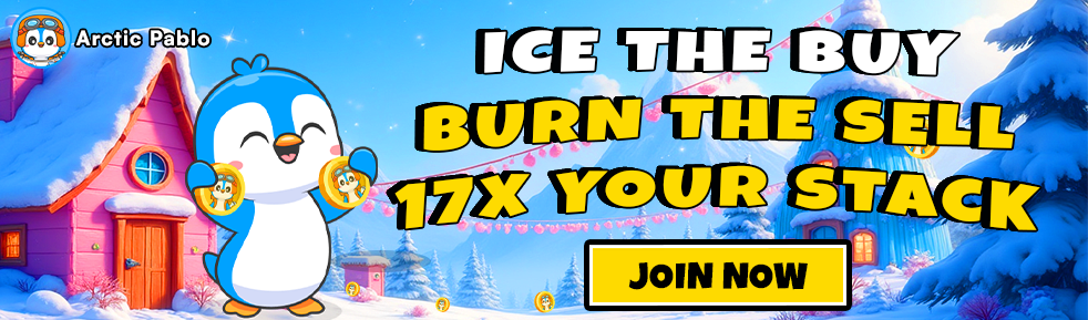 The current price of Arctic Pablo Coin is $0.00088 at its 37th location, Ice Ice Baby. The coin is predicted to reach a listing price of $0.008, offering substantial ROI.