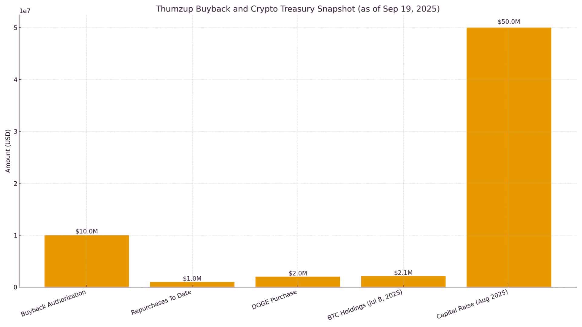 According to recent company updates, the Thumzup buyback now totals $10 million, with open-market repurchases already completed this month. The move is accompanied by a disclosed Dogecoin purchase and earlier funding that supports the plan.
