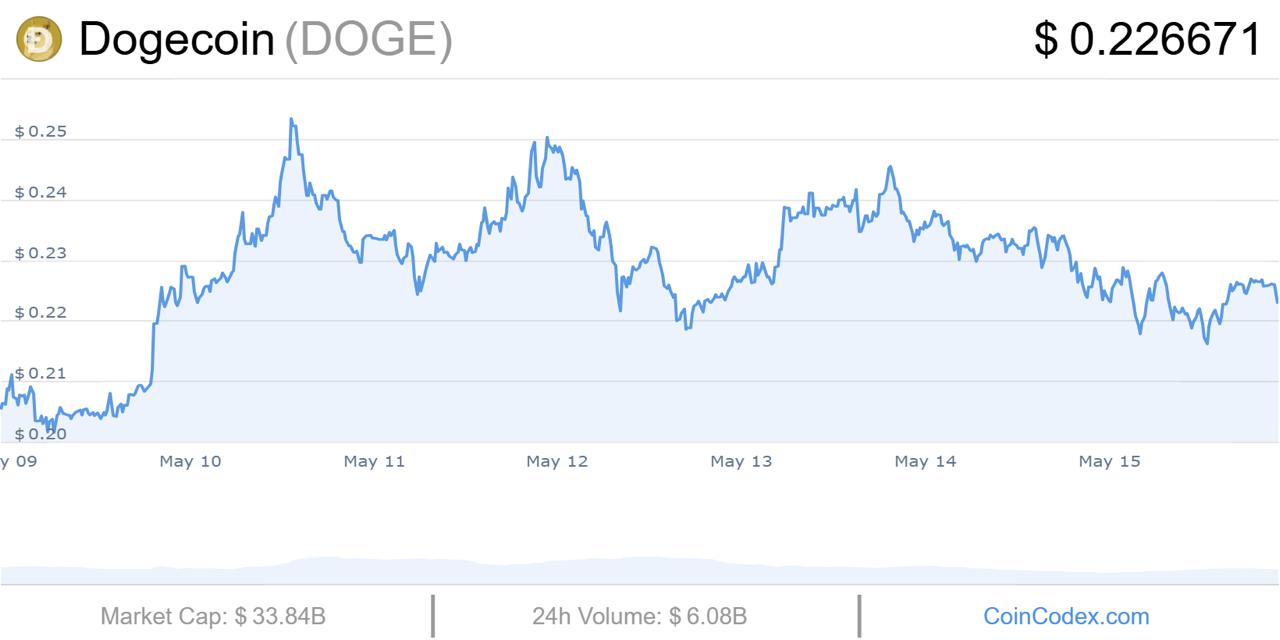Dogecoin (DOGE) has enjoyed a bullish May, driven by whale accumulation and increased active addresses. The price is currently trading around $0.22, exceeding the 200-day SMA. However, overbought conditions and a relatively weak month-to-date uptrend suggest a potential correction.