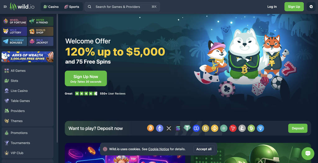 Wild.io, launched in 2022 and operating under a Curacao license, is designed for cryptocurrency users, supporting various digital assets alongside Dogecoin. The platform offers a vast game library, with over 4,000 games, and some reports indicating upwards of 7,000 titles.