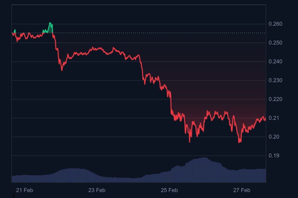 CoinMarketCap data indicates DOGE is currently trading at $0.19, following a decline to Wednesday's low. Dogecoin and Solana were among the top 20 cryptocurrencies by market capitalization to suffer significant losses last week.