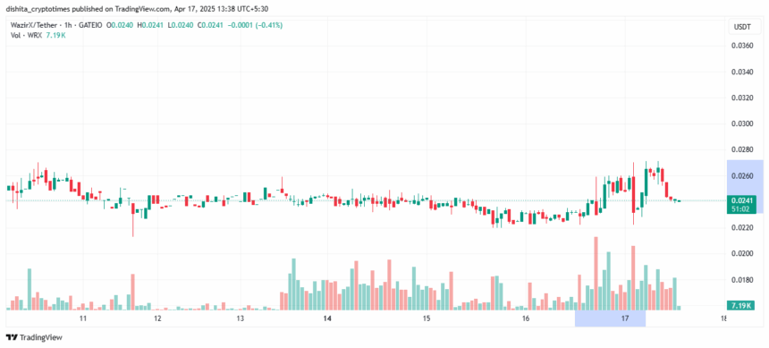 On April 16th, the WazirX native token began a steady climb. By the morning of April 17th, it had increased by nearly 18% over a 17-hour period. This wasn't a dramatic spike, but rather a consistent rise punctuated by minor pullbacks and unusually high trading activity.