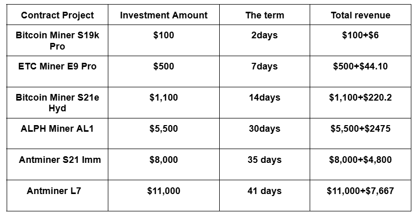 Note:The platform offers a variety of contracts with stable returns. For more information: FEDMINING