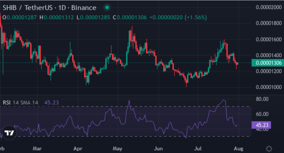 Shiba Inu is experiencing a period of price consolidation. The token decreased by 5.91% in the past week, partially offsetting the 14.17% rally recorded over the last month. Over a six-month period, SHIB is still down 30.95%. The price is currently trading between 0.00001277 and 0.00001576, a narrow range closely observed by traders.