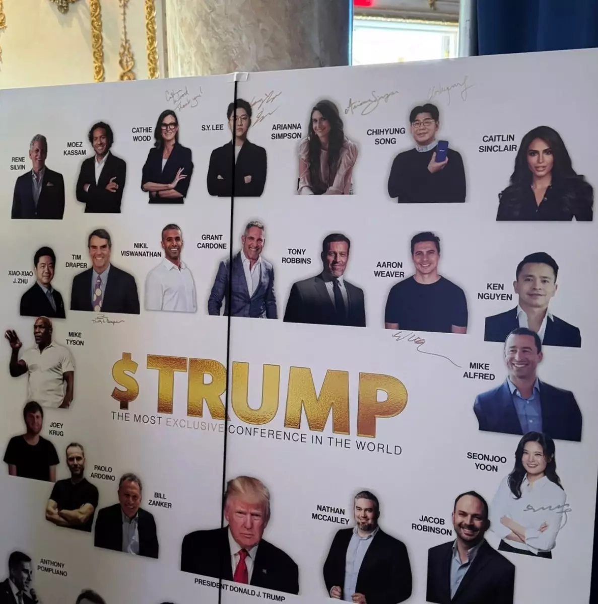JUST IN : Programmation des intervenants pour le $TRUMP La conférence sur la cryptographie comprend le président Donald Trump, Cathie Wood, Tony Robbi...