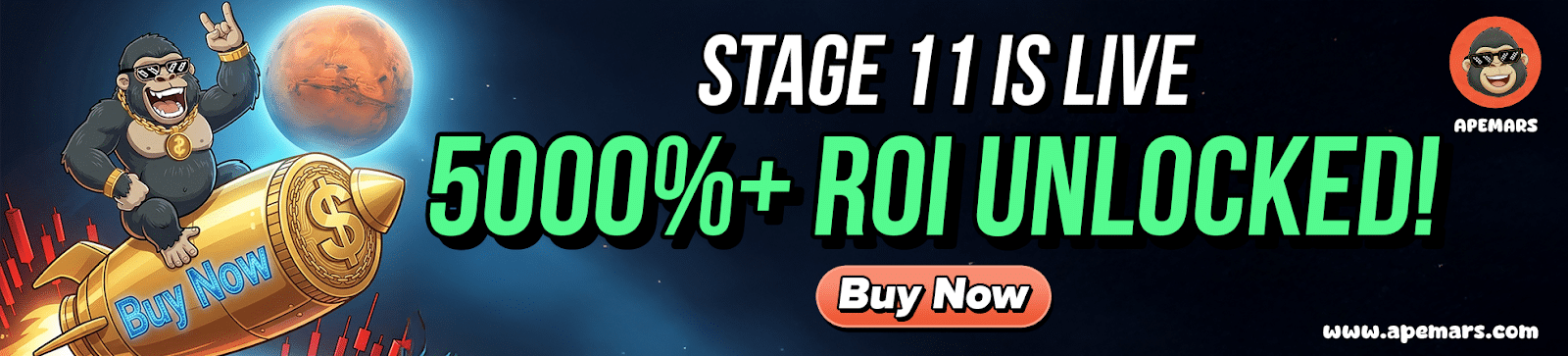 APEMARS is a presale cryptocurrency project currently in Stage 11, offering early access to tokens through a structured stage-based pricing model.