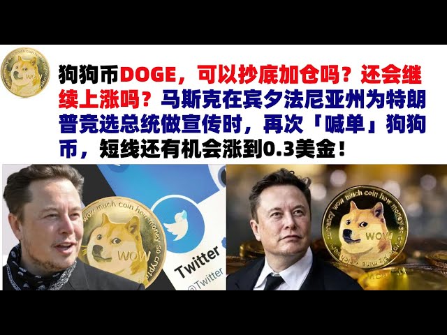 • 狗狗币DOGE,可以抄底加仓吗?还会继续上涨吗?马斯克在宾夕法尼亚州为特朗普竞选总统做宣传时,再次「喊单」狗狗币,短线还有机会涨到0.3美金!马斯克狗狗币|DOGE行情分析!