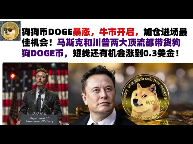 • 狗狗币DOGE暴涨,牛市开启,加仓进场最佳机会!马斯克和川普两大顶流都带货狗狗DOGE币,短线还有机会涨到0.3美金!马斯克狗狗币|DOGE行情分析!