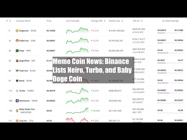• Meme Coin News: Binance Lists Neiro, Turbo, and Baby Doge Coin