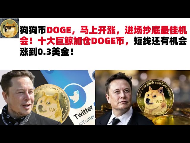 • 狗狗币DOGE,马上开涨,进场抄底最佳机会!十大巨鲸加仓DOGE币,短线还有机会涨到0.3美金!马斯克狗狗币|DOGE行情分析!