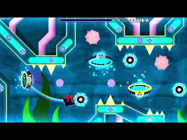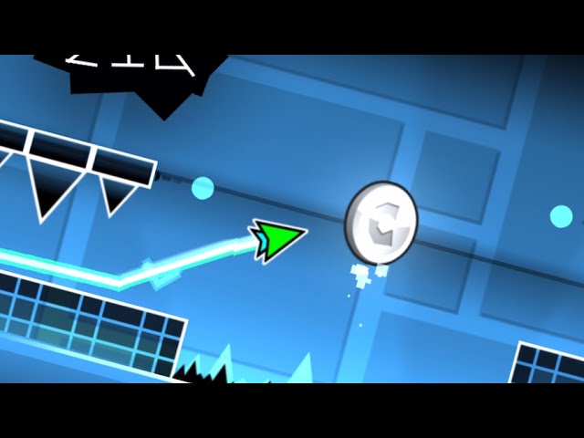 I was trying to do it on mobile, but I'm too dumb. I've come back home and tried again. The last part with slopes and cyan orbs... it was a big trouble, but I've done it at one shot. Coins 0:09 Instead of entering the size up portal, jump over the gear in small icon mode. 0:14 The way to the 1st coin is a little bit hard. Practice to learn the best positioning. 0:41-0:46 Collect 4 fishes to make the 2nd coin appear. 1:22 Tap the cyan orb very late to collect the skull. 1:30 3rd coin. #GeometryDash, #MediumDemon