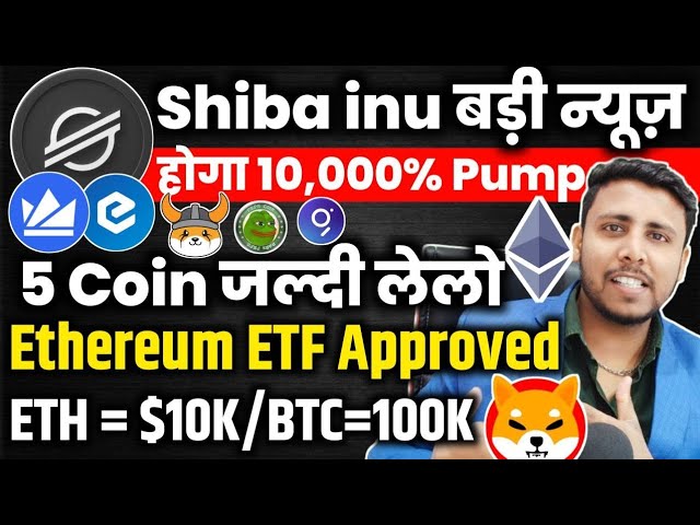 • ?Ethereum ETF Approved | 5 Coins जल्दी लेलो | Shiba inu coin price prediction ? shiba inu news today