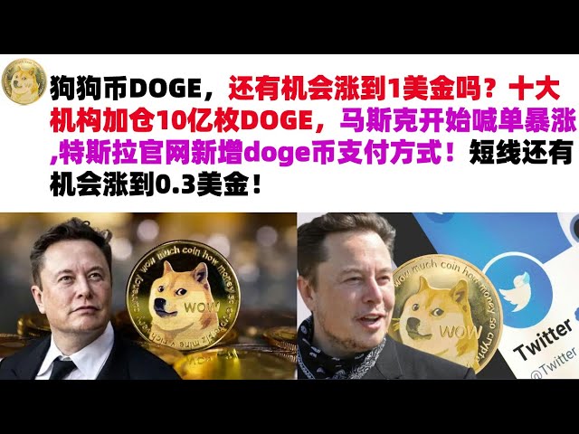 • 狗狗币DOGE,还有机会涨到1美金吗?十大机构加仓10亿枚DOGE,马斯克开始喊单暴涨,特斯拉官网新增doge币支付方式!短线还有机会涨到0.3美金!马斯克狗狗币|DOGE行情分析!