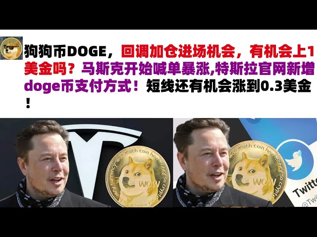 • 狗狗币DOGE,回调加仓进场机会,有机会上1美金吗?马斯克开始喊单暴涨,特斯拉官网新增doge币支付方式!短线还有机会涨到0.3美金!马斯克狗狗币|DOGE行情分析!