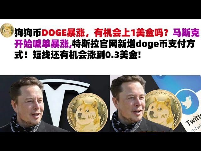 • 狗狗币DOGE暴涨,有机会上1美金吗?马斯克开始喊单暴涨,特斯拉官网新增doge币支付方式!短线还有机会涨到0.3美金!马斯克狗狗币|DOGE行情分析!