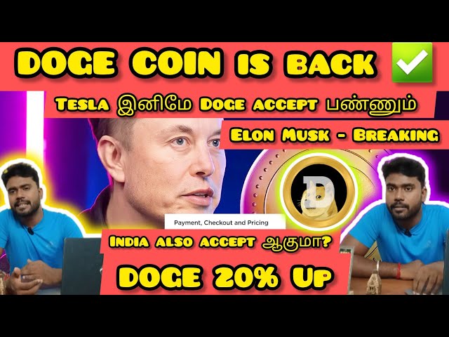 DOGE Coin is back ✅ - Tesla Doge accept ஆயிடுச்சு - Elon Musk சொன்ன Interview - India Accepts DOGE ? Thank you for watching our video ☺️ For more information please check out of WhatsApp Channel below : https://whatsapp.com/channel/0029VaCLMPK1CYoPK7zgux3a For inquiries, reach out us at : karmabusiness008@gmail.com #bitcoin #tamilcryptochannel #cryptotamil #news #breaking #millionaire #btc #cryptoboy #tamilnews