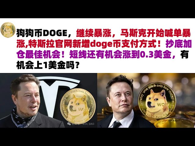• 狗狗币DOGE,继续暴涨,马斯克开始喊单暴涨,特斯拉官网新增doge币支付方式!抄底加仓最佳机会!短线还有机会涨到0.3美金,有机会上1美金吗?马斯克狗狗币|DOGE行情分析!