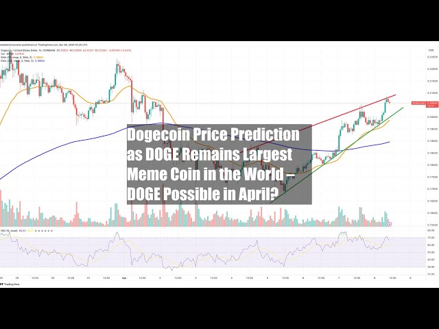 Simon Chandler Last updated: April 8, 2024 09:26 EDT | 3 min read DOGE has jumped by 6% in the past 24 hours, with the Dogecoin price reaching $0.2059 today as the imminent Bitcoin halving provokes market-wide optimism. This move means that DOGE has gained by a modest 1% in a week but by a more impressive 24% in the last 30 days, with the alt remaining the largest meme token in the market by cap. What’s potentially bullish is that DOGE is still 71% down in relation to its all-time high of $0.7316, implying that the market continues to undervalue the token. As such, it could have some big, market-beating gains in store in the near future, with the aforementioned halving helping it to rally further in the next week or so. Dogecoin Price Prediction as DOGE Remains Largest Meme Coin in the World – $1 DOGE Possible in April?. Dogecoin’s chart is in a bullish position, although based on recent movements, it may dip a little today before seeing another gain. Its relative strength index is dipping again after touching 70 earlier this morning, although this could be only a short-lived dip, perhaps to 60 or 55. At the same time, DOGE’s 30-day average (yellow) continues to climb well beyond the 200-day (blue), a sign that it’s in the middle of a growth spurt that could continue for a little while yet. DOGE’s 24-hour trading volume has also risen in the past couple of days, moving from $1.7 billion late on Saturday to around $2.68 billion today. This signals a significant surge in interest in the token, with the past few days seeing some whales take DOGE off exchanges. As such, we can expect the Dogecoin price to see at least one or two more rallies en route to the Bitcoin halving, which will happen on April 20. The halving is already boosting BTC and the wider market at the moment, and in the longer term it could help inaugurate another big bull market. As the market’s biggest meme token, DOGE will ride this wave, while it may also continue to benefit specifically from support from Elon Musk and X. X has been patiently applying for and receiving money transmitting licenses in the US in recent months, with the platform planning to roll out digital payments sooner or later. Assuming that X includes DOGE payments in its plans, then the Dogecoin... https://cryptonews.com/news/dogecoin-price-prediction-as-doge-remains-largest-meme-coin-in-the-world-1-doge-possible-in-april.htm #crypto #bitcoin #ethereum #cryptocurrency #news #blockchain #litecoin #cryptonews #cryptonewstoday #cryptoworld #cryptoworlddaily #dogecoin #dogecoinnews #dogecoinnewstoday #memecoins #memecoinsnews #memecoinsnewstoday #priceprediction #pricepredictionnews #crypto ***NOT FINANCIAL, LEGAL, OR TAX ADVICE! JUST OPINION! I AM NOT AN EXPERT! I DO NOT GUARANTEE A PARTICULAR OUTCOME I HAVE NO INSIDE KNOWLEDGE! YOU NEED TO DO YOUR OWN RESEARCH AND MAKE YOUR OWN DECISIONS! THIS IS JUST ENTERTAINMENT! This information is what was found publicly on the internet. This information could’ve been doctored or misrepresented by the internet. All information is meant for public awareness and is public domain. This information is not intended to slander harm or defame any of the actors involved but to show what was said through their social media accounts. Please take this information and do your own research. bitcoin, blockchain, crypto, cryptocurrency, altcoin, investment, ethereum, bitcoin crash, xrp, cardano, ripple