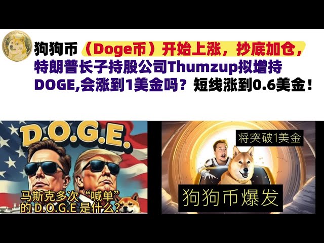 • 狗狗币(Doge币)开始上涨,抄底加仓,特朗普长子持股公司Thumzup拟增持DOGE,会涨到1美金吗?短线涨到0.6美金#DOGE币#马斯克狗狗币#DOGE行情分析