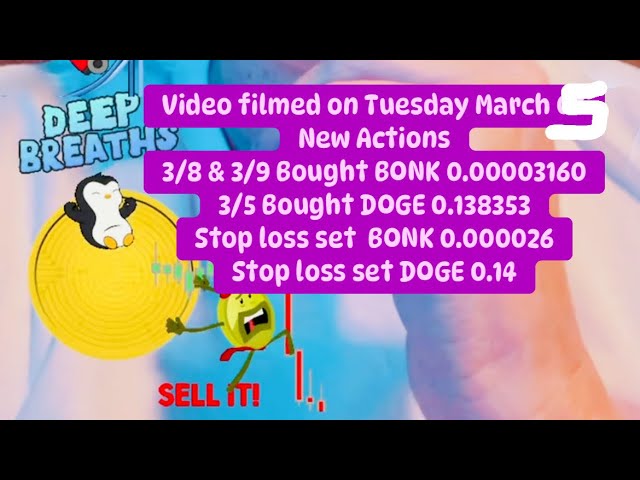 I bought SHIB almost 2 years ago and just sold all of it in profit. Learn from my mistakes and have a entry and exit plan ready before you enter any crypto or stock. I am actually enjoying this run up this time since I have my disciolines and strategies in place. Let me know in the comments if you are in any crypto. Be safe out there...much love and light...Peace. Video filmed on Tuesday , March 06,2024 3/9/24 Update: 3/9: Bought $100.00 of BONK 0.00003160 3/8: Bought $100.00 of BONK 0.00003160 Stop loss set 0.000026 3/5/24 bought $124.00 of DOGE 0.138353 Stop loss 0.14 I’m looking ? to increase my positions. Let me know in the comments hows it going for you ? Much love ???