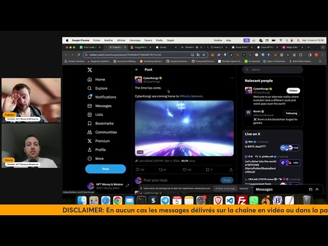 ? Pour récupérer votre Bonus Bitget jusqu'à 1000$ et -10% frais de trading : https://bonus.bitget.com/GBNY8Y ? Code Parrainage : h5s6 ➖ ? Pour accéder au Discord : https://www.nftmoney.fr/programme ➖ ? Newletter GRATUITE sur les artistes et projets NFT : https://nftmoneymetaverse.substack.com/ ?Pour nous contacter : younftmoney@gmail.com ➖ ?? DISCLAIMER ?? Tous les avis exposés ici ne sont que des avis personnels qui ne constituent en aucun cas des conseils financiers de quelque manière que ce soit. La chaîne NFT Money & Metaverse ne fait aucun conseil en investissement, vous et vous seuls êtes responsable de vos investissements réalisés ou à venir. Tous commentaires d'actualité ou sur le cours des actifs financiers NFT, crypto, forex, commodités, peuvent être soumis à l'inexactitude pleine et entière. Nous vous conseillons à ce titre de bien vous renseigner avant d’investir dans un actif financier. Le marché spécifique et ultra volatile des NFT et des crypto-monnaies évoluant à une telle vitesse qu'une information vraie aujourd'hui peut ne plus l'être dès demain. Les projets présentés sur cette chaine sont selon nous intéressants à mettre en lumière, cependant restez toujours critique et vérifiez au travers de plusieurs sources n'importe quelle information qui vous sera présentée.