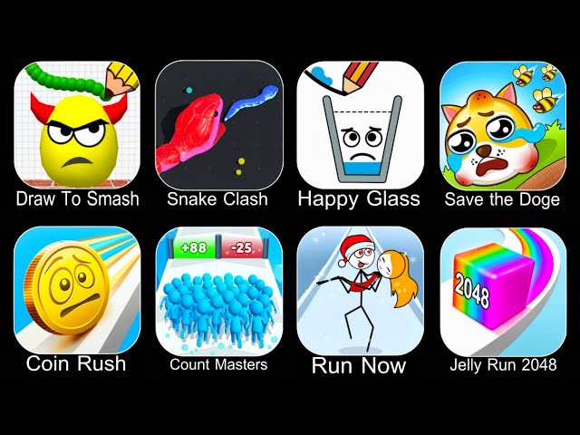 • Draw To Smash,Snake Clash,Happy Glass,Save The Doge,Coin Rush,Count Master,Run Now,Jelly Run 2048