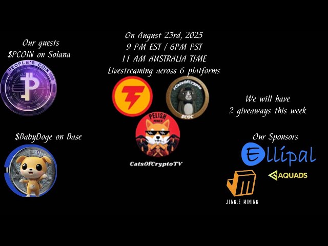 • CatsOfCryptoTV Live with Babydoge on Base & PCOIN sponsored by @JingleMining
