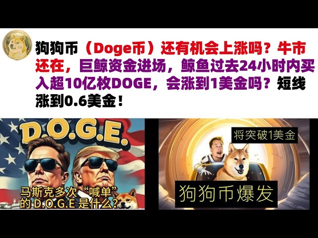 • 狗狗币(Doge币)还有机会上涨吗?牛市还在,巨鲸资金进场,鲸鱼过去24小时内买入超10亿枚DOGE,会涨到1美金吗?短线涨到0.6美金#DOGE币#马斯克狗狗币#DOGE行情分析