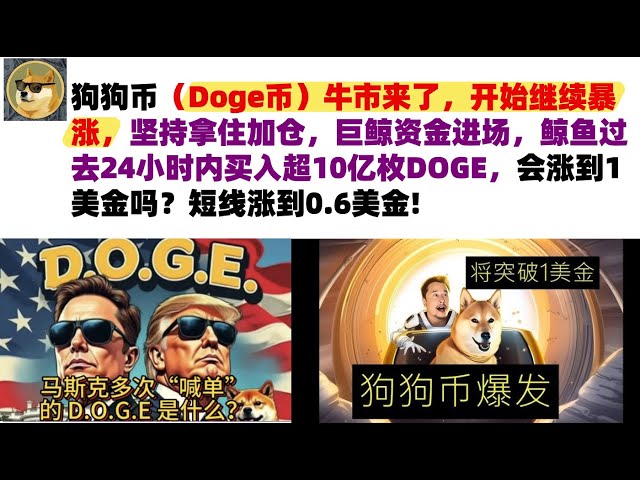 • 狗狗币(Doge币))牛市来了,开始继续暴涨,坚持拿住加仓,巨鲸资金进场,鲸鱼过去24小时内买入超10亿枚DOGE,会涨到1美金吗?短线涨到0.6美金#DOGE币#马斯克狗狗币#DOGE行情分析