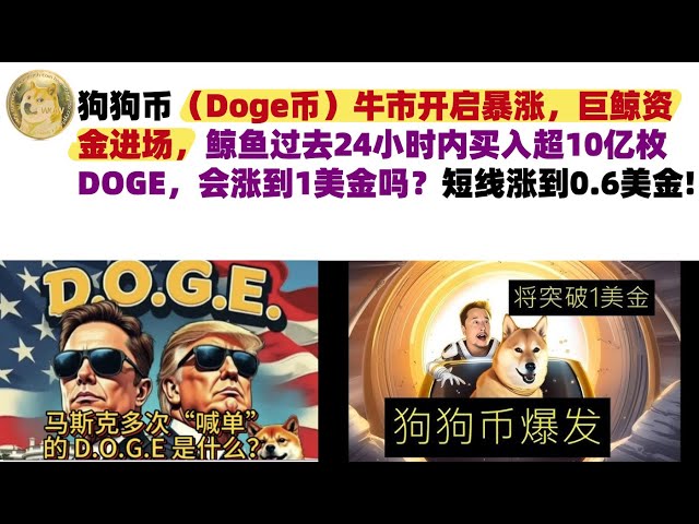 • 狗狗币(Doge币)牛市开启暴涨,巨鲸资金进场,鲸鱼过去24小时内买入超10亿枚DOGE,会涨到1美金吗?短线涨到0.6美金#DOGE币#马斯克狗狗币#DOGE行情分析!
