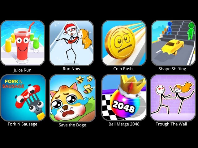 • Save The Doge,Coin Rush,Run Now,Shape Shifting,Fork N Sausage,Through The Wall,Juice Run
