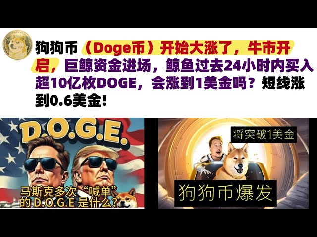• 狗狗币(Doge币)开始大涨了,牛市开启,巨鲸资金进场,鲸鱼过去24小时内买入超10亿枚DOGE,会涨到1美金吗?短线涨到0.6美金#DOGE币#马斯克狗狗币#DOGE行情分析
