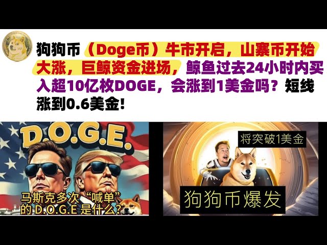 • 狗狗币(Doge币)牛市开启,山寨币开始大涨,巨鲸资金进场,鲸鱼过去24小时内买入超10亿枚DOGE,会涨到1美金吗?短线涨到0.6美金#DOGE币#马斯克狗狗币#DOGE行情分析