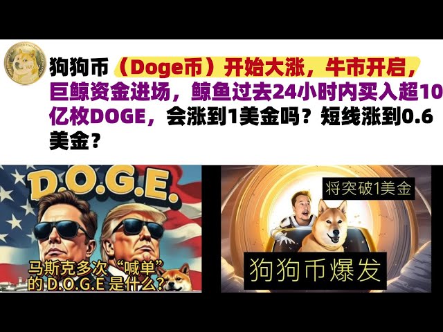 • 狗狗币(Doge币)开始大涨,牛市开启,巨鲸资金进场,鲸鱼过去24小时内买入超10亿枚DOGE,会涨到1美金吗?短线涨到0.6美金#DOGE币#马斯克狗狗币#DOGE行情分析
