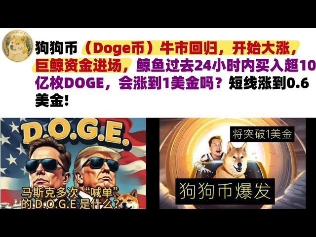 • 狗狗币(Doge币)牛市回归,开始大涨,巨鲸资金进场,鲸鱼过去24小时内买入超10亿枚DOGE,会涨到1美金吗?短线涨到0.6美金#DOGE币#马斯克狗狗币#DOGE行情分析